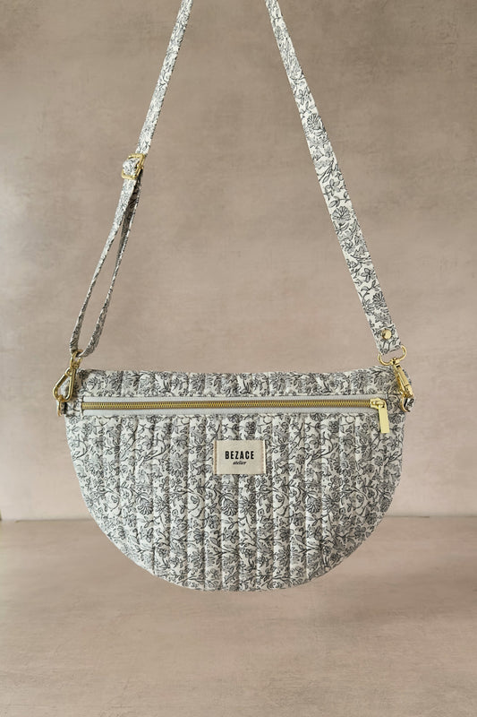 Le sac demi-lune vous permettra d'emporter avec vous vos essentiels et d'avoir les mains libres. Son extérieur 100% coton combiné avec notre matelassé signature lui procure une texture incomparable. Parfait pour aller faire des commissions, aller au parc avec bébé ou partir en escapade.